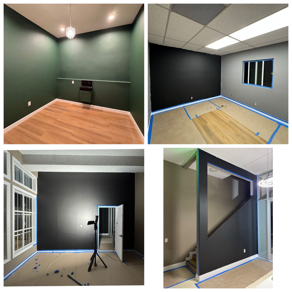Walls, ceilings, accent walls, doors – detailed prep and clean lines.